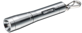 手のひらに収まる円柱状の小型ライトです。本体はキーチェーン付きで、小型かつ軽いので杖の持ち手やバッグ等に付けることができます。オン/オフの切替は本体のヘッド部を回すだけなので簡単です。単4の乾電池1本を使用します。電池交換もドライバーいらずで、手動でできます。夜間歩くときに点灯すると、周りに気づいてもらいやすくなります。